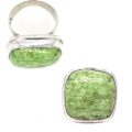 This incredible Sterling Silver Ring has a center stone. This center stone is a square cabochon Gaspeite. Gaspeite is an apple-green colored stone. it is said that a Gaspeite stone has an ability to being you mental clarity. The Ring is in Size 8. For a reasonable amount, this Ring can be re-sized. This Ring was made in the United States.