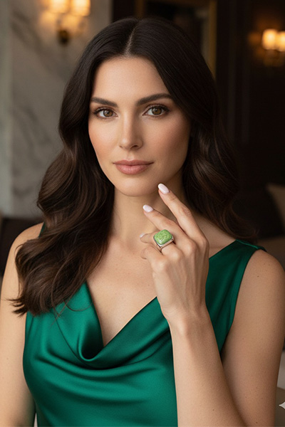 GASPEITE: Some say that gemstones take on a metaphysical characteristic. It is said that the Gaspeite stone is a stone of mental clarity. Whatever your belief, you will love the experience of this apple-green stone.