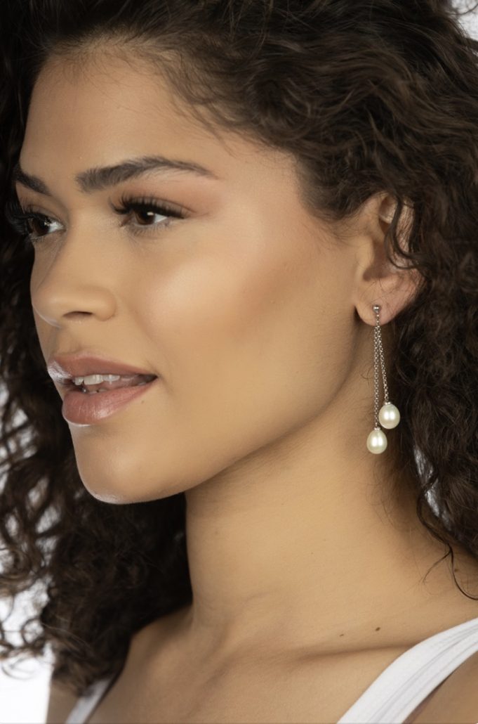 These Earrings are made with Pearls and Sterling Silver. They have a post back. Connected to the post back is a chain with the second hanging Pearl. As you move, these Earrings move with you. You’ll find them wonderful day and night. The Earrings are made by Vanessa Gioielli in Valenza, Italy.