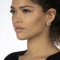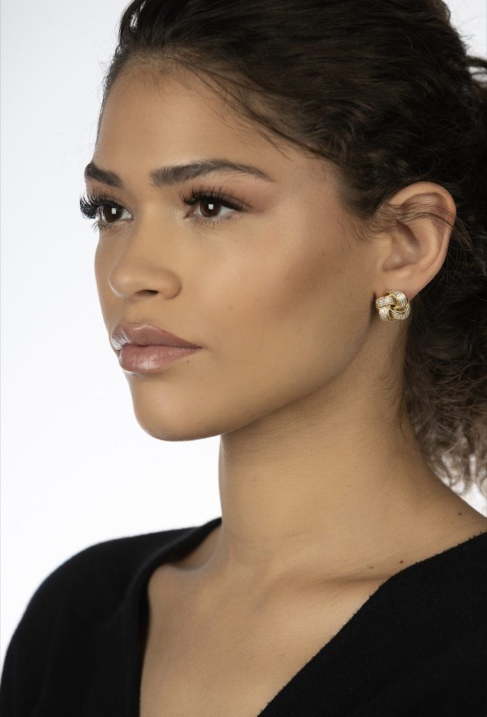 These post Earrings are made in Sterling Silver with a gold metal overlay. The Earrings have white Crystals on the face of the knotted design. These Earrings are made by Vanessa Gioielli in Valenza, Italy.