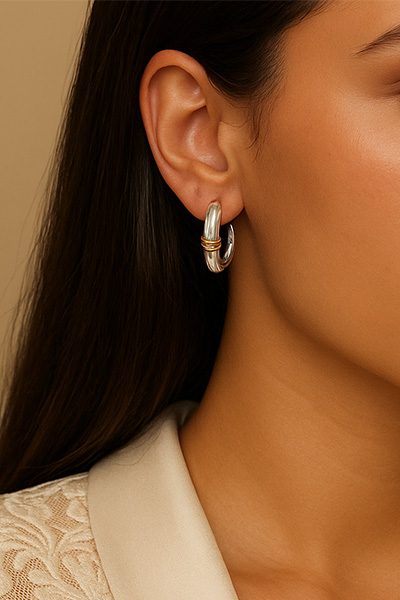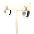Sterling Silver is trimmed in Yellow Gold in these Hinged Hoop Earrings. The classic design in these Hoop Earrings is an all-day, every day look. These Earrings are hand-crafted in Mexico.